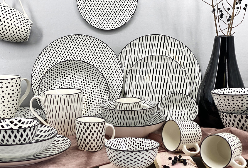 Moderní porcelán s nadčasovou kombinací barev - černá a bílá. Jednoduchý a výrazný černý dekor je umocněný černou okrajovou linkou. Moderní talíře, které se hodí do každé kuchyně. Vyberte si černé porcelánové talíře, misky a hrnky pouze v jednom dekoru nebo kombinujte více dekorů. Kolekce BlackLine kombinuje čtyři různé vzory černého dekoru, originální a designová jídelní sada. Designové misky, každý v jiném dekoru a přesto v dokonalé symbióze.
