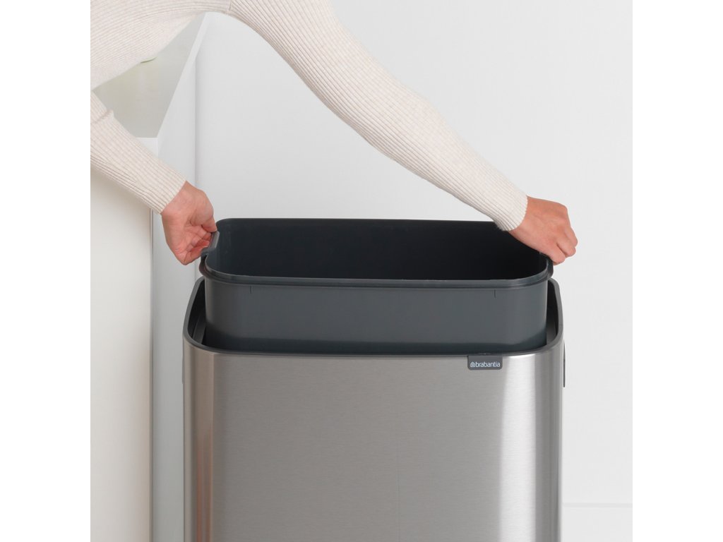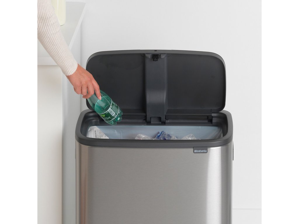 Prosím seznamte se - Bo Touch Bin - navržen pro třídění odpadu s láskou! Dokonalý a zcela inovativní design zkombinovaný se všemi funkcemi snadného třídění odpadu. Výsledek téměř 100 let zkušeností a nejmodernější technologií. Vysoce kvalitní materiály a patentovaná povrchová úprava FPP v barvě matné nerez dělají z tohoto koše Bo něco jedinečného.