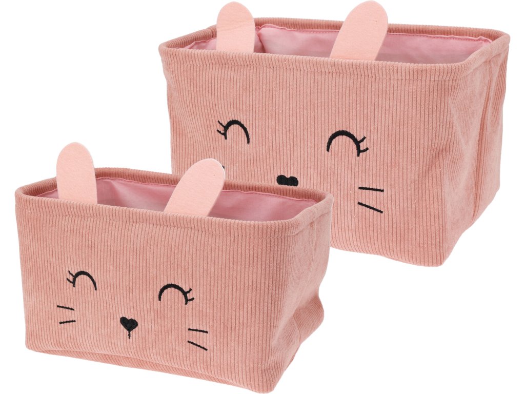 Dětský úložný košík Králík, 33x20x19 , manšestr, růžová