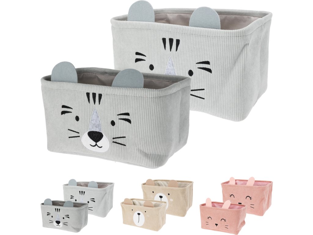 manšestrový materiál: Košíky jsou vyrobeny z manšestrového materiálu, který je měkký na dotek a zároveň pevný a odolný, což zajišťuje dlouhou životnost produktu.