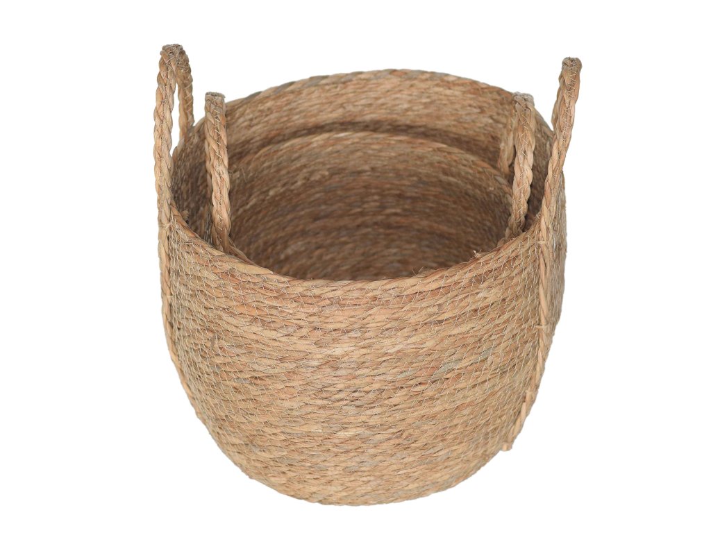 Koš Boma L je díky své velikosti a hloubce multifunkční. Perfektně poslouží jako stylový koš na prádlo, úložný koš na polštáře a deky v obývacím pokoji nebo jako dekorativní obal na velký květináč, který skryje nevzhledné plastové nádoby. Je vybaven dvěma pevnými pletenými uchy, která usnadňují jeho přenášení a manipulaci. Ať už jej použijete kdekoli, úložný koš Boma přinese do vašeho interiéru pocit klidu, útulnosti a dokonalého uspořádání. Získejte tento přírodní bytový doplněk a užijte si krásu ruční práce.