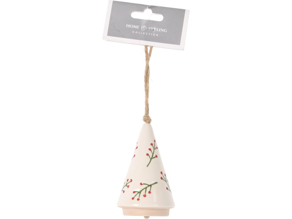 Bílý zvonek zdobí malovaný dekor větviček s bobulemi, což vytváří jemný a okouzlující vzhled. Jemný zvoneček má rozměry 50x50x85 mm.