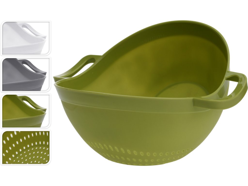 Cedník je do tvaru kolébky a děrování je na jedné straně. Pokud tedy potřebuje proprat salát...nakloníme cedník k jedné straně, kde se nám bude držet voda a poté nakloníme na stranu druhou a cedíme.