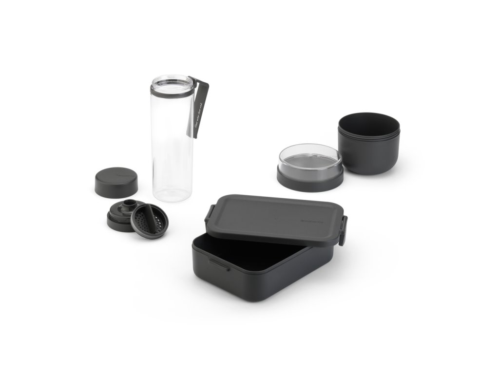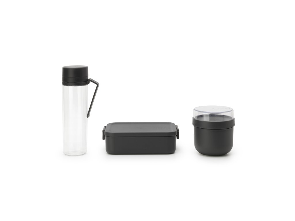 Make & Take Jídelní set, 3 ks, tmavěšedá(Lahev na vodu, Snídaňová miska, Obědový box Medium)