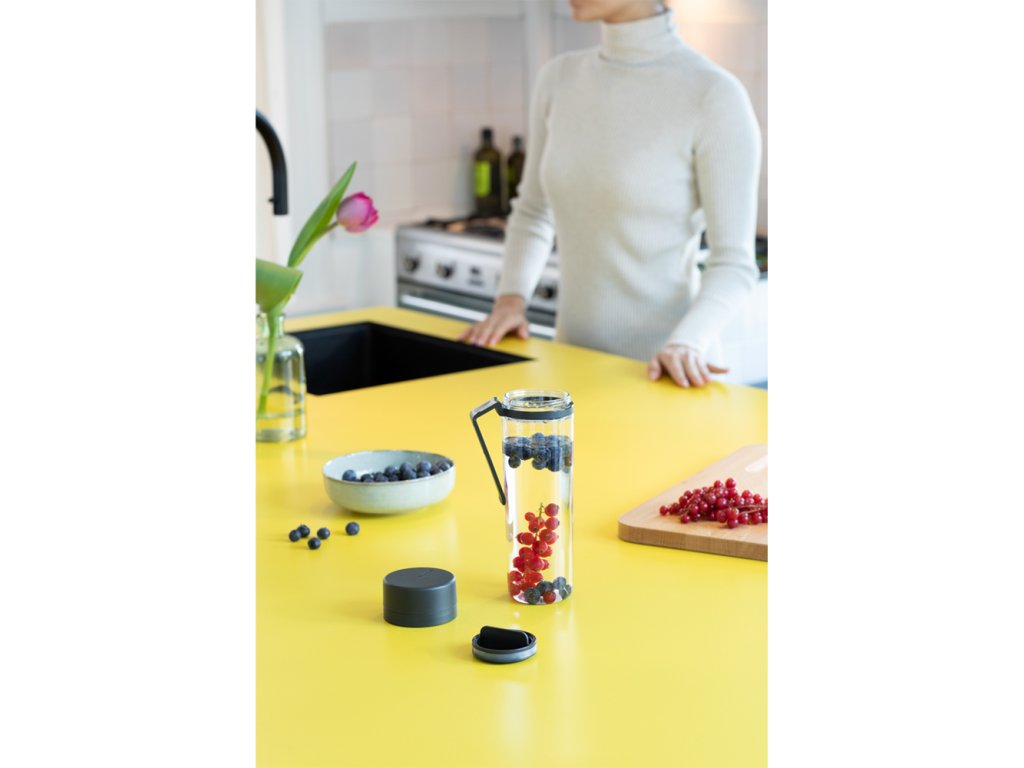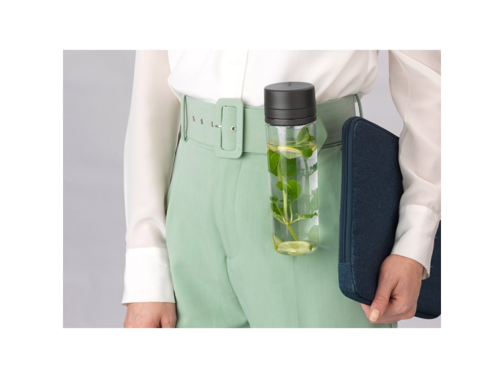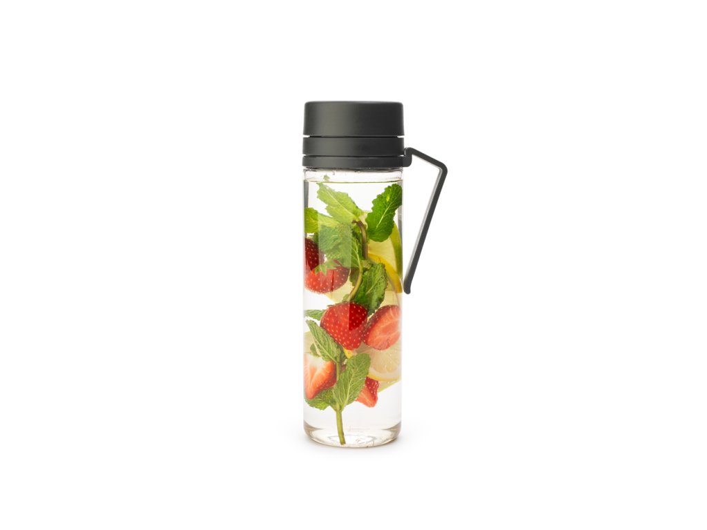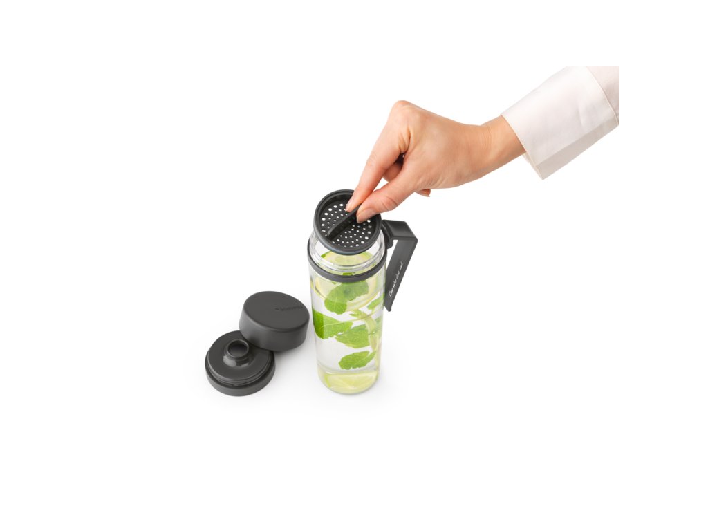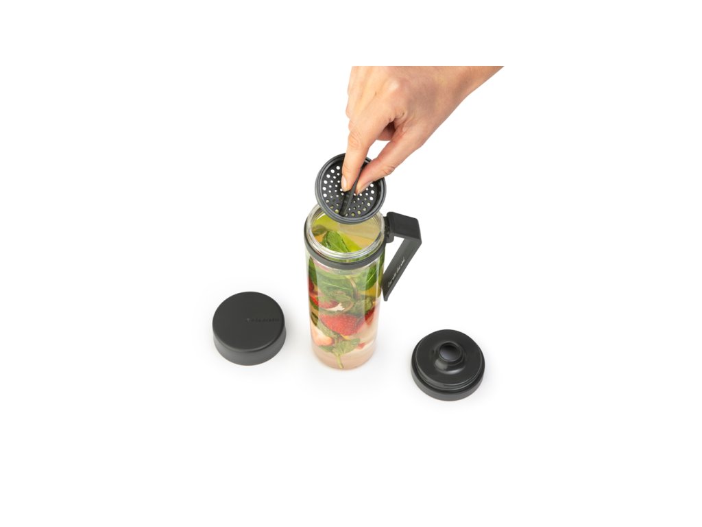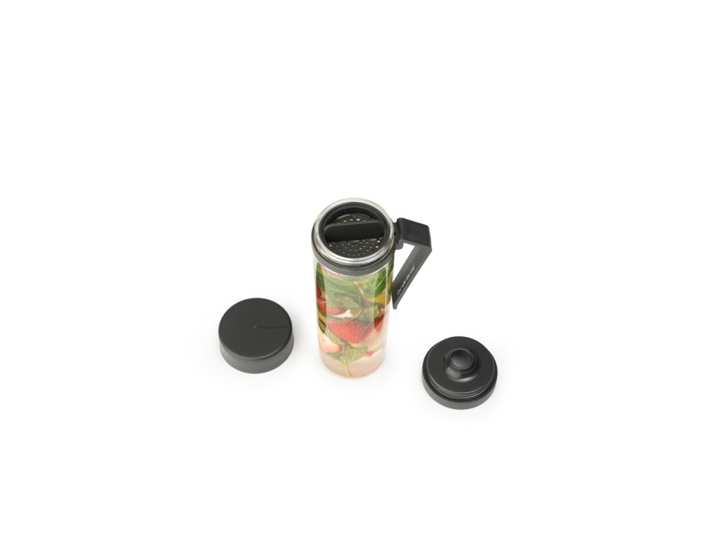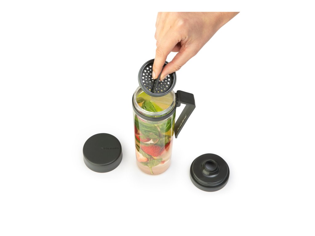 Lahev na vodu se sítkem vám umožní vychutnat si na cestách ochucenou vodu ovocem nebo bylinkami. Ovoce vložte do lahve a díky chytrému sítku zůstane v lahvi a nebude překážet při pití.  Šroubovací uzávěr lahve pevně těsní a zabraňuje rozlití. Praktická rukojeť slouží zároveň jako praktická opěrka, aby po umytí lépe vyschla.