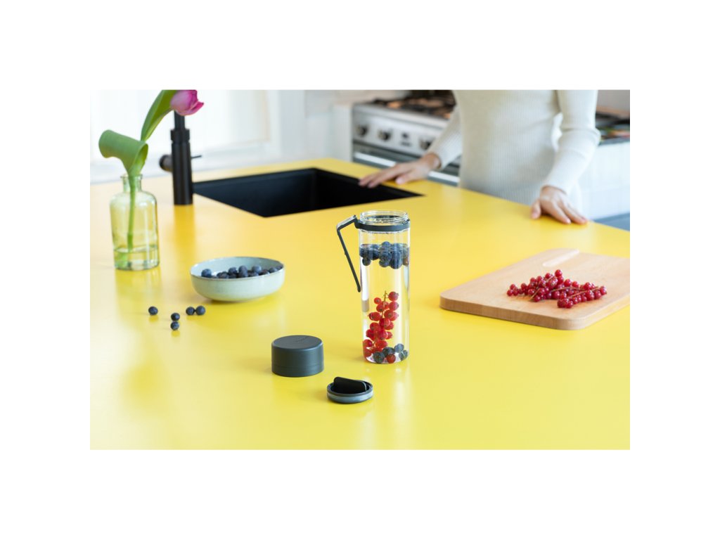Lahev na vodu z kolekce Make & Take od holandské značky Brabantia se sítkem na ovoce.