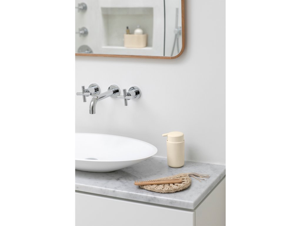 ReNew umyvadlová sada, 3ks - Dávkovač na mýdlo, držák na zubní kartáček a miska v jemné béžové barvě. Hygienický a praktický design, odolný proti korozi, snadno plnitelný a...