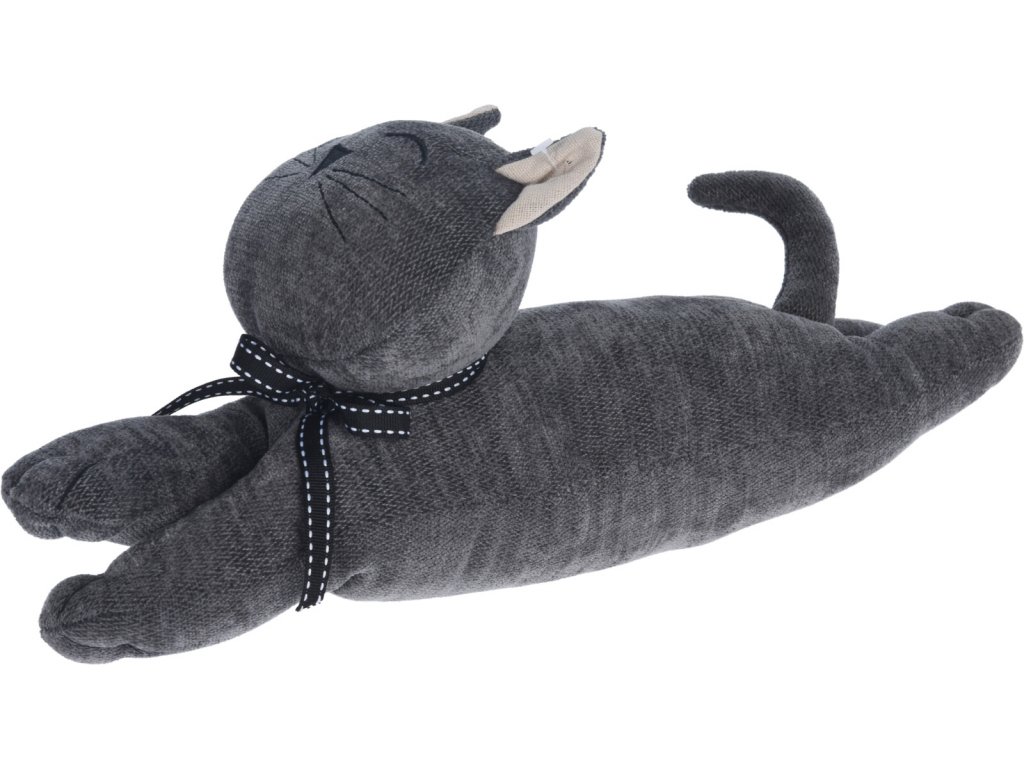 Dveřní zarážka Kočka - zábrana na dveře,  ležící kočka, barva tmavě šedá, váha 1 kg, délka 38 cm.