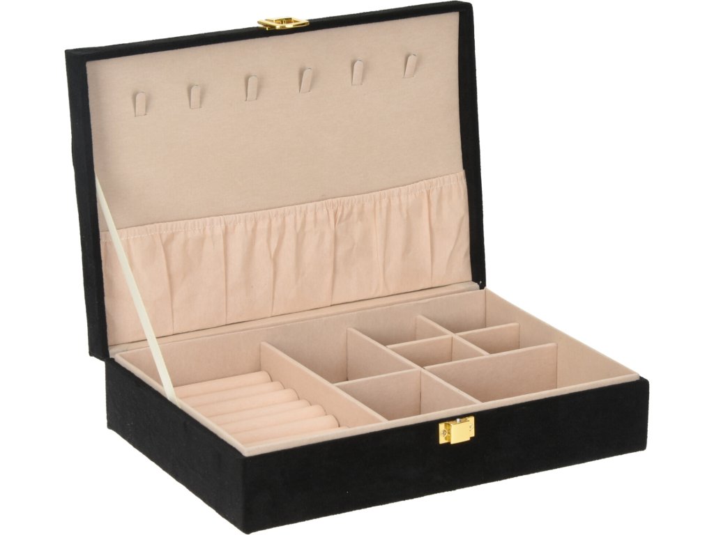 Elegantní šperkovnice Glamour černá se zlatým zámkem (28x19x7 cm)