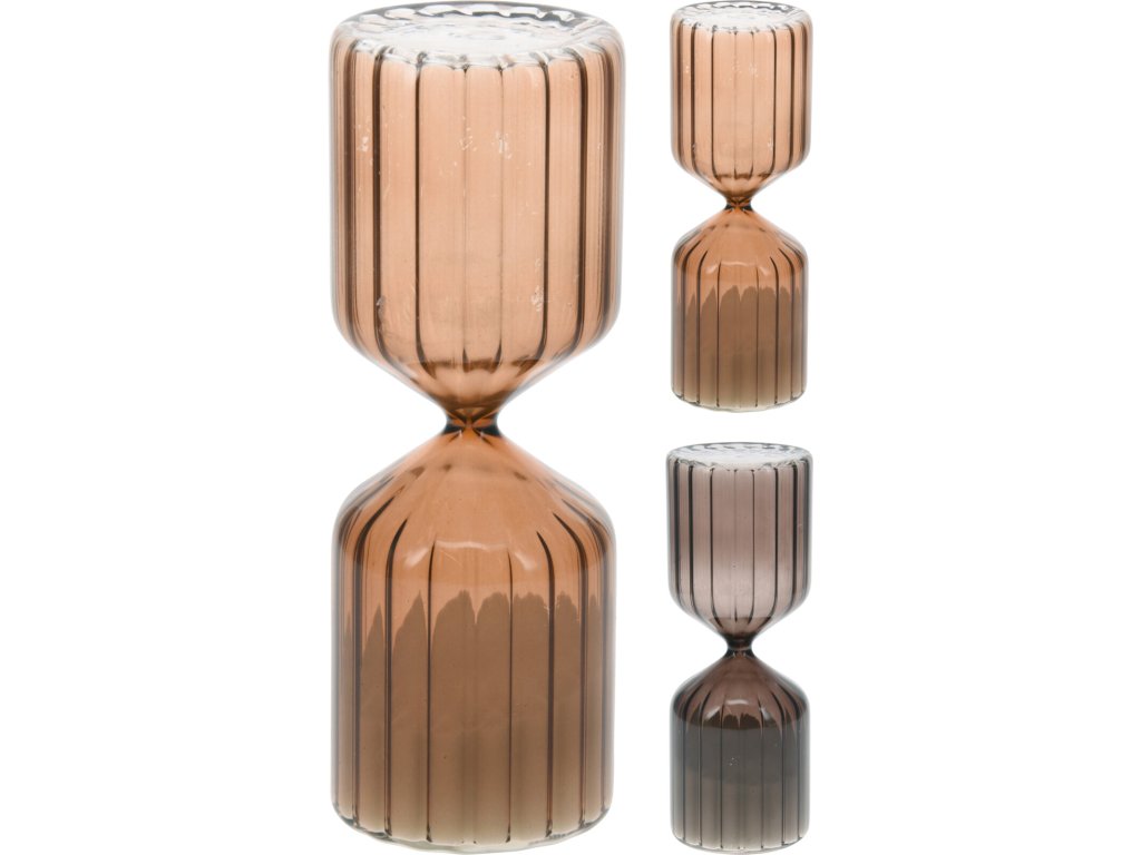 Přesýpací hodiny jsou více než jen časomíra - jsou to kus čistého umění. Vyrobené z kvalitního skla, jejich povrch září v šedých odstínech, přinášejíce do vašeho prostoru okouzlující atmosféru. S výškou 19 cm a průměrem 7 cm jsou tato hodiny perfektní dekorací, která zdobí jakýkoliv prostor.