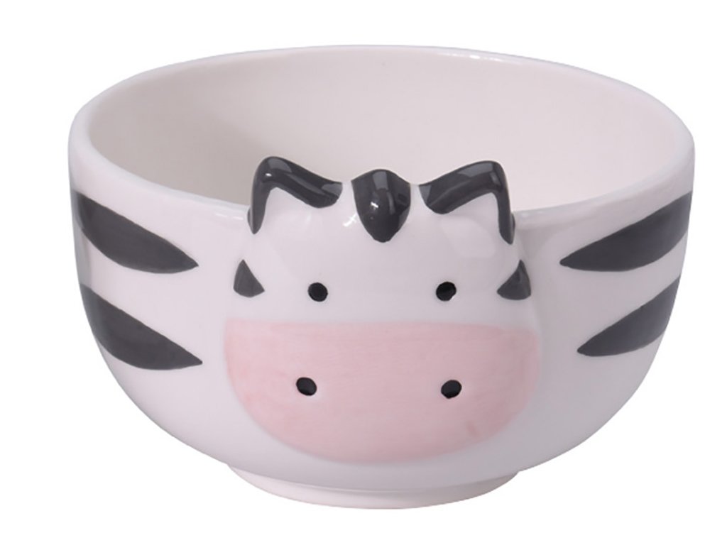 Dětská keramická miska s motivem zvířátka. Zajímavým detailem jsou ouška zvířátek přesahující okraj misky.