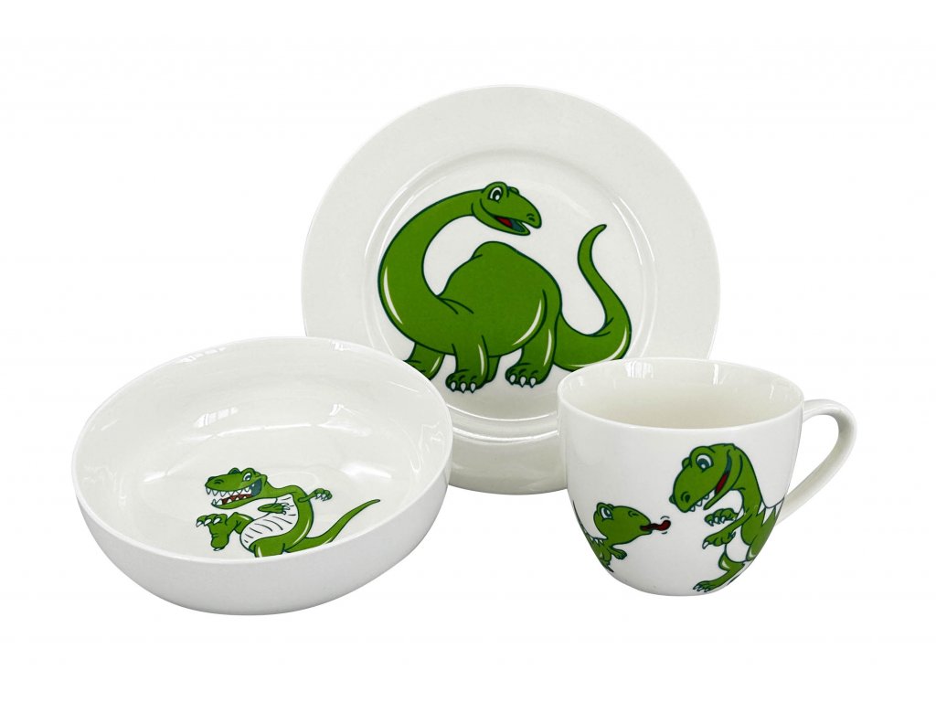 - Šálek DINO : Dětský šálek s objemem 220 ml je perfektní pro podávání mléka, džusu nebo horkých nápojů. Motiv dinosaura přidává setu dětský a hravý vzhled.