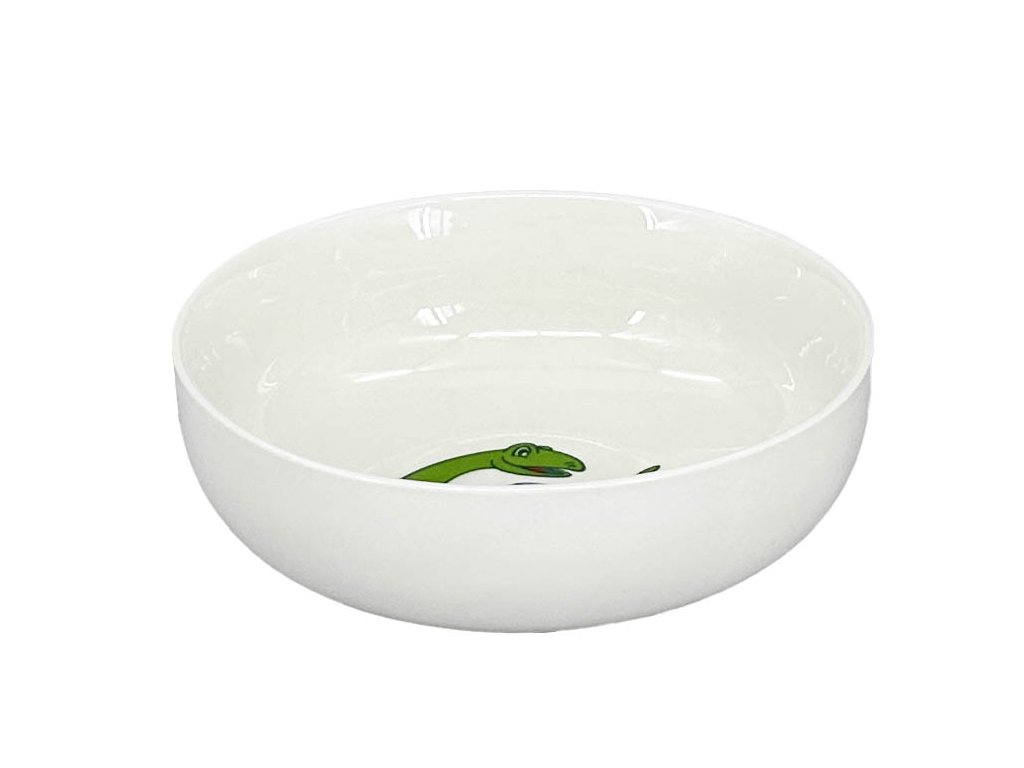 Miska Dino ø 14cm je vhodná pro podávání polévek, kaší, cereálií nebo jakéhokoli oblíbeného jídla vašeho dítěte. Stejně jako talíř je i tato miska zdobená motivem dinosaura.
