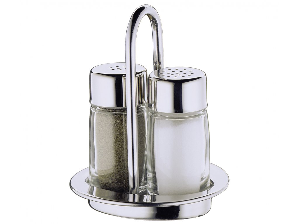 Praktický doplněk pro stolování. Menáž obsahuje slánku a pepřenku. Jednoduché přenášení díky úchytu.