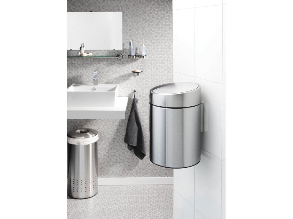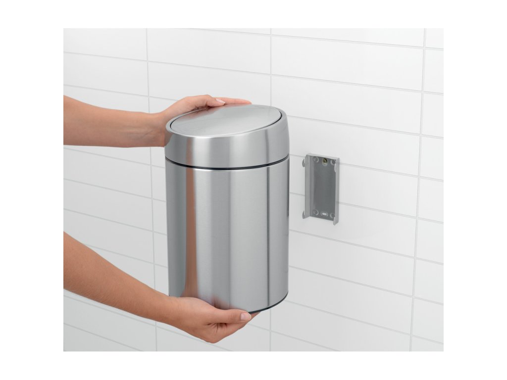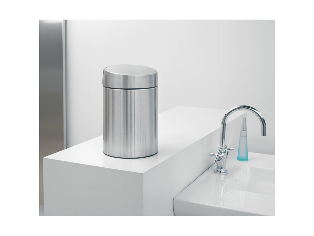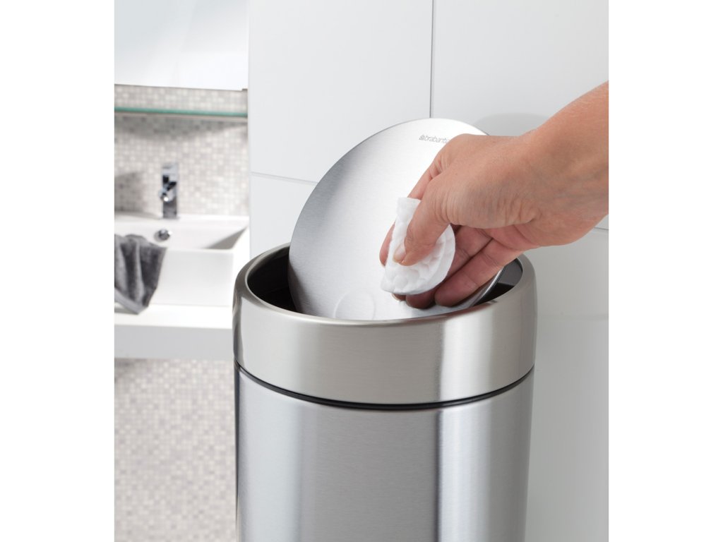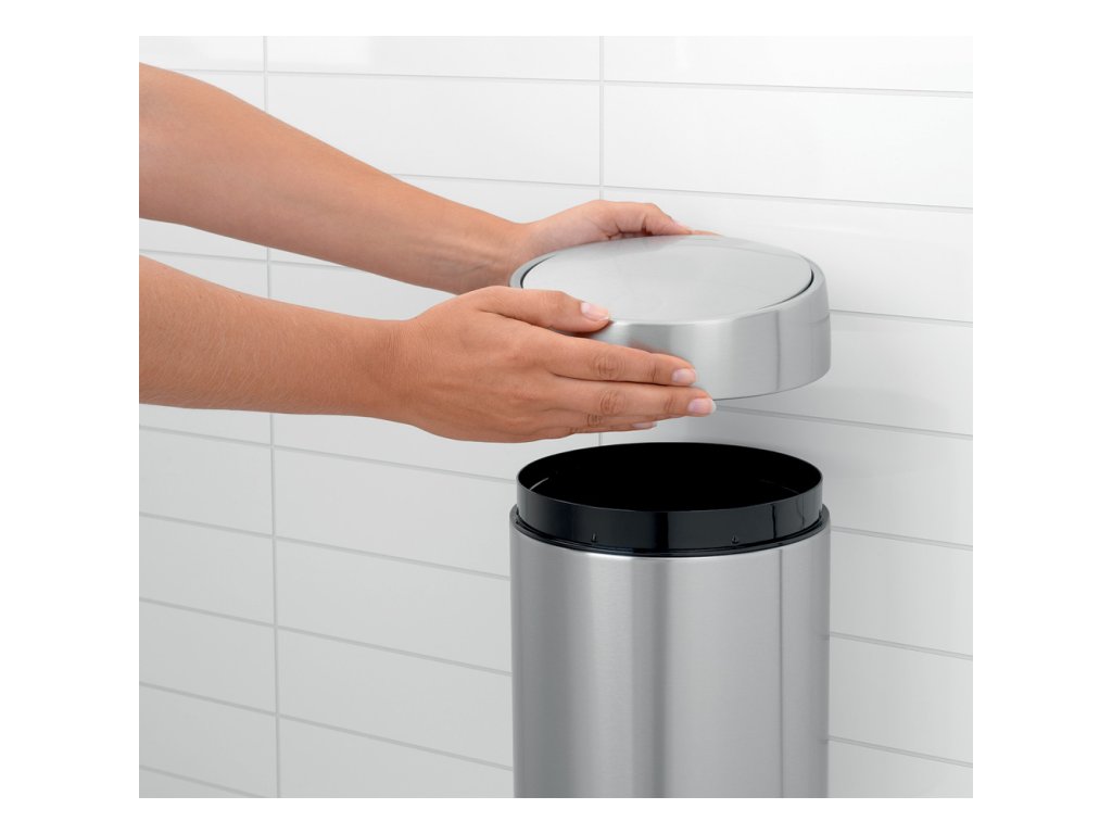 Dokonalý tvar a dokonalý pohyb - to je tento luxusní malý koše slide bin od značky Brabantia v epřekonatelné matné nerez FPP úpravě s černým víkem