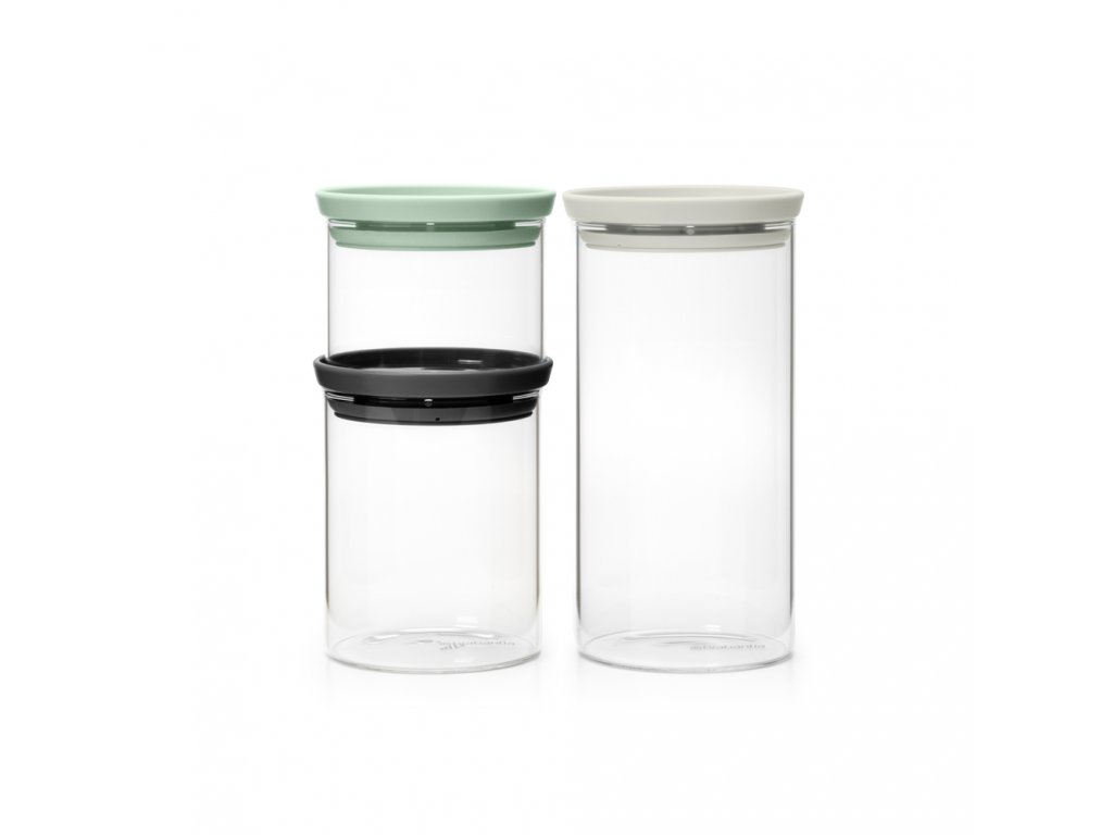 Sada 3ks skleněných dóz 0,3, 0,6 a 1,1 L , světlešedá, tmavěšedá, nefritově zelená