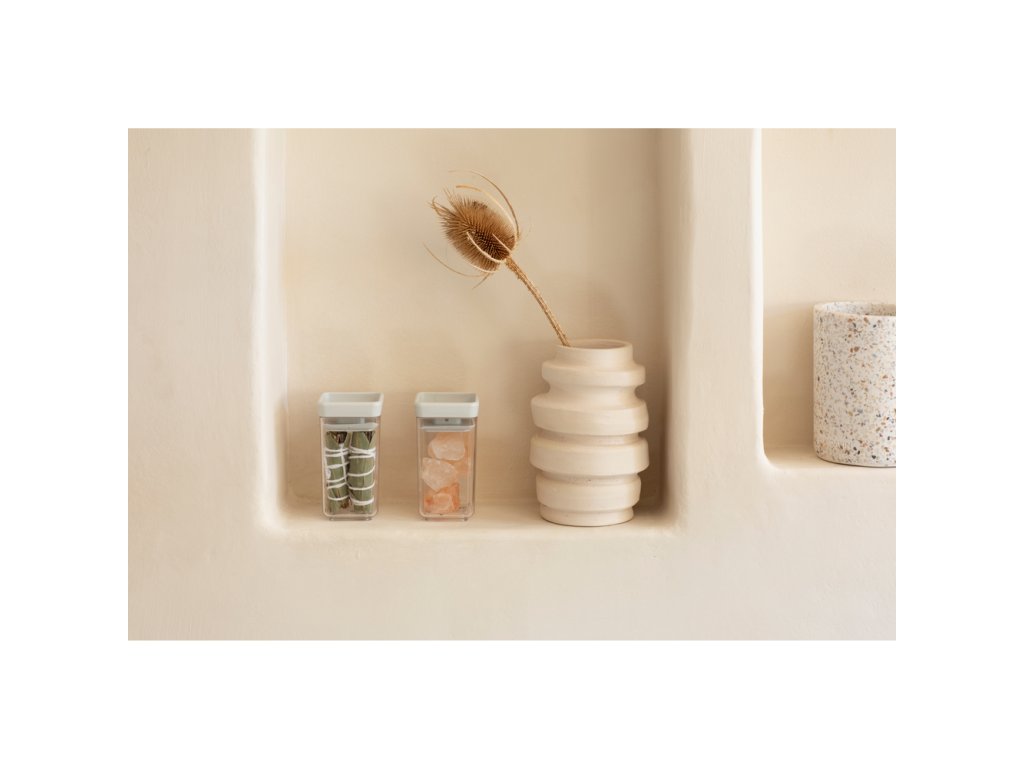 Dóza Square - Tasty+ stohovatelné dózy, 2 ks, 2 x 0,15 litru, materiál plast bez BPA, hranatý tvar, průhledné tělo, světle šedé víko.