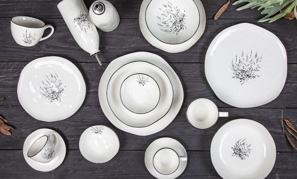 Kolekce Esence od české značky by inspire...porcelán s českou duší. Tato jídelní souprava bude skutečnou esencí Vašeho života. Stejně jako u kolekce Legenda se jedná o kvalitní kostní porcelán, který má nepravidelný tvar, jemně kropenatý povrch a černou okrajovou linku. Navíc disponuje černým dekorem v podobě trsu květin. Vyčárkovaná malba dekoru skvěle podtrhuje kropenatý povrch. Můžete tedy kombinovat s kolekcí Legenda.