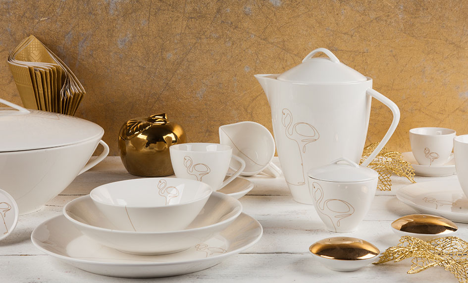 Trendy motiv „plameňáka“ v moderním provedení i barevnosti. Jakostní porcelán z kolekce Noble od české značky by inspire ... porcelán s českou duší ozdobený perokresbou plameňáka v matné zlaté barvě je prostě jedinečný. Pokud hledáte skutečně originální talíře, právě jste je našli. Kulaté porcelánové talíře zdobené zlatým plameňákem jsou nevšední a zajímavé.