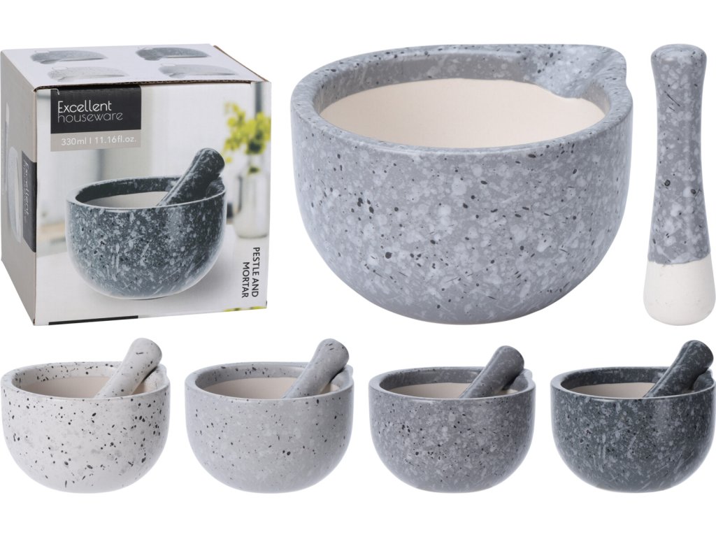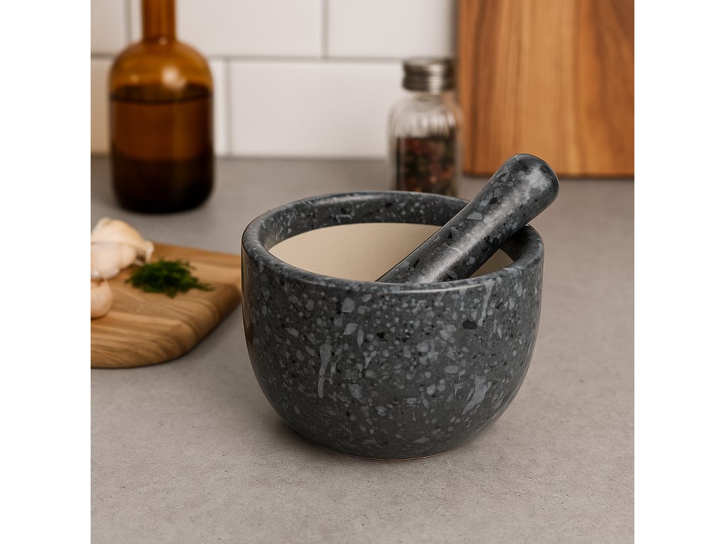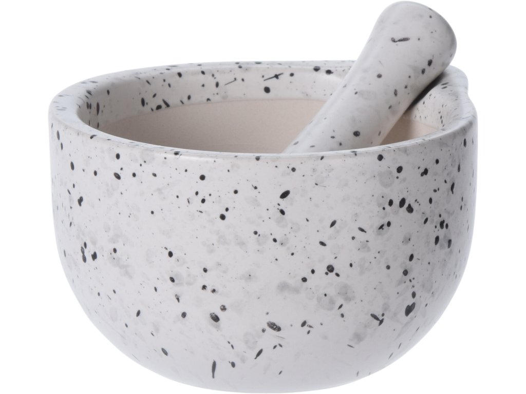 Bílý hmoždíř StoneLook v objemu 330 ml je vyroben z kvalitní kameniny a zaujme originálním žulovým vzhledem s reaktivní glazurou, která vytváří unikátní strukturu na každém kusu. Elegantní design v kombinaci s praktickým využitím dělá z tohoto hmoždíře nejen stylový doplněk, ale i spolehlivý nástroj pro každodenní použití v kuchyni.