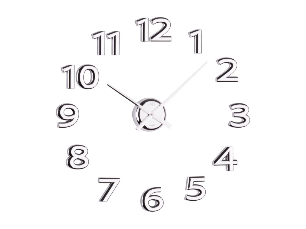 Hodiny nástěnné nalepovací, stříbrné kovové číslice