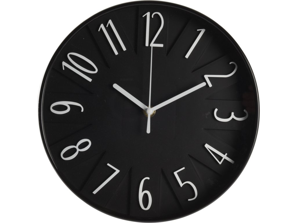 Nástěnné hodiny jsou jistě praktickým doplňkem každého interiéru, ale také výrazným dekoračním prvkem. Černé hodiny s bílými číslicemi to je minimalistický styl v nadčasové kombinaci barev bílá - černá. Kulatý jednoduchý tvar nástěnných hodin působí moderně a minimalisticky. Velké číslice jsou nejen praktické, ale také vypadají velmi efektně.