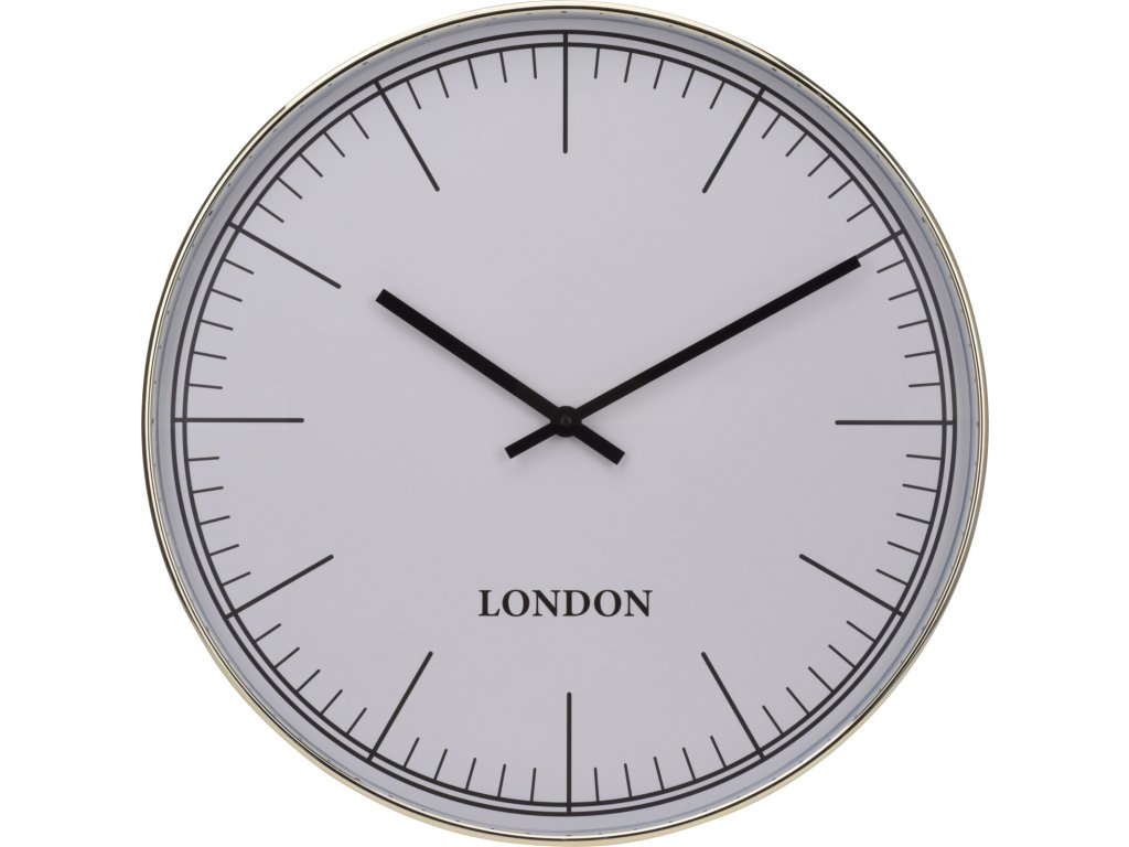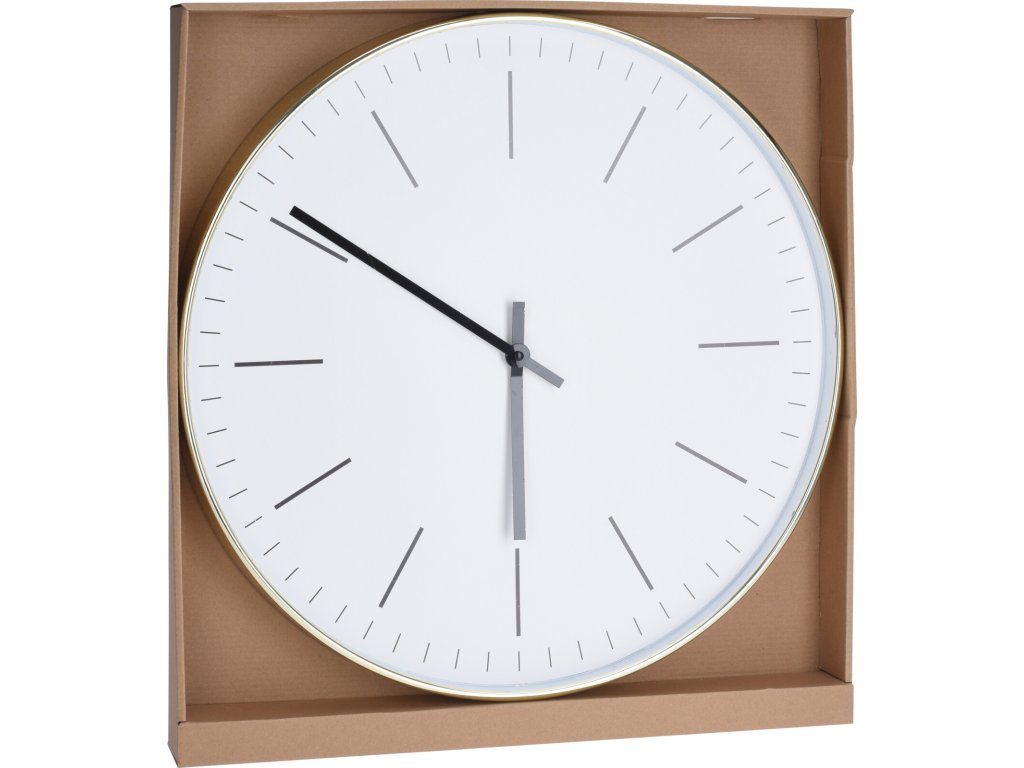 Ručičkové hodiny bez číslic. Nástěnné hodiny mají zlatý rámeček a bílý ciferník. Jednoduché a elegantní hodiny, které se hodí do každého interiéru. Nástěnné hodiny jsou praktickým a dekorativním prvek do každé domácnosti.