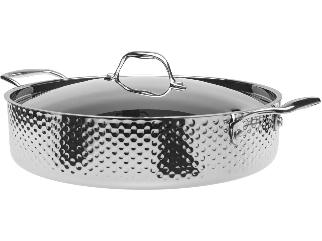 Hrnec nízký 30x7,5 cm včetně poklice z leštěné nerezové oceli.