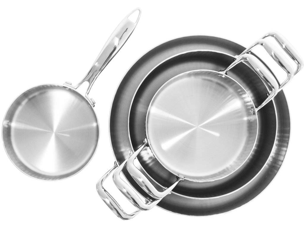 Sada nádobí pro všechny typy varných desek, včetně indukční. Lze mýt v myčce na nádobí a používat v troubě. Díky 3vrstvé technologii se velmi rovnoměrně zahřívá celý povrch nádoby. Vnitřní mírně reliéfní povrch nemá sebemenší vliv na používání a jednoduchost čištění.