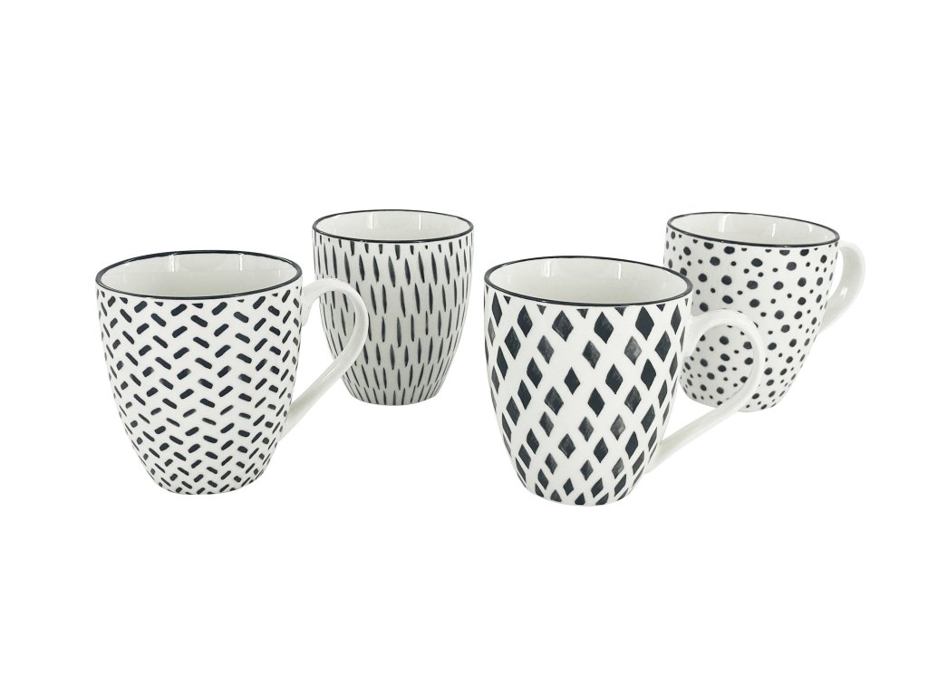 Jednoduchý a výrazný černý dekor je umocněný černou okrajovou linkou. Moderní hrnky, které se hodí do každé kuchyně. Vyberte si porcelánové hrnky pouze v jednom dekoru nebo nakombinujte více dekorů.