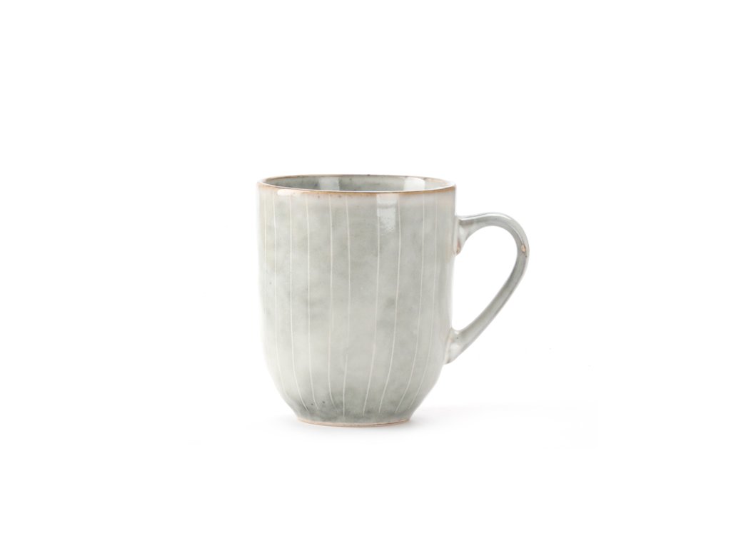 Hrnek na čaj od naší značky Clay je jedinečný a stane se vaším společníkem pro chvíle pohody. Jeho krémově šedá glazura plynule přechází od světlého tónu u horního okraje k tmavším odstínům, čímž vytváří nádherný vizuální efekt. Povrch zdobí decentní, světlé proužky, které dodávají hrnku sofistikovanost a příjemnou texturu. Díky ručnímu glazování má každý keramický hrnek svůj originální odstín, který se pohybuje na škále od světlých až po tmavší tóny krémově šedé. S objemem 350 ml je ideální pro vaši ranní kávu, čaj nebo horkou čokoládu. Díky robustnímu uchu a příjemnému tvaru se pohodlně drží v ruce. Tento hrnek perfektně doplní váš jídelní servis Calma, ať už si vyberete talíře, misky nebo konvici ze stejné kolekce.