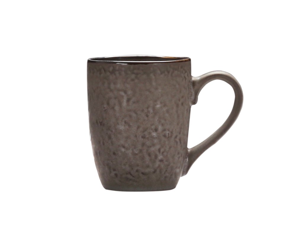 Hrnek na čaj nebo kávu v elegantním šedohnědém odstínu se pyšní výraznou plastickou strukturou a kontrastní hnědou okrajovou linkou. Nepravidelný, plastický povrch není jen vizuálně poutavý, ale dodává hrnku autentický, ručně vyrobený vzhled. S objemem 350 ml je ideální pro vaši ranní kávu, odpolední čaj nebo horkou čokoládu. Hrnek je součástí kompletního jídelního servisu Castano, který kombinuje funkčnost s originálním designem.