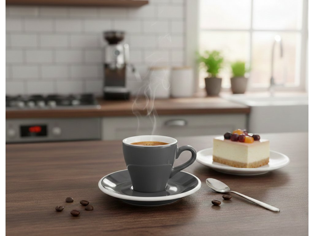 Dodejte svému kávovému koutku nádech metropolitního minimalismu. Náš šedý šálek na espresso Milano o objemu 75 ml v sobě spojuje moderní estetiku a nekompromisní baristické parametry. Elegantní antracitový odstín s vysokým leskem skvěle doplňuje progresivní kónický tvar, který je navržen tak, aby koncentroval aroma a zajistil perfektní stabilitu kávové cremy. Tento šálek je ideální volbou pro ty, kteří hledají styl, který vybočuje ze zažitých tradic a přináší do rituálu pití espressa moderní dynamiku.