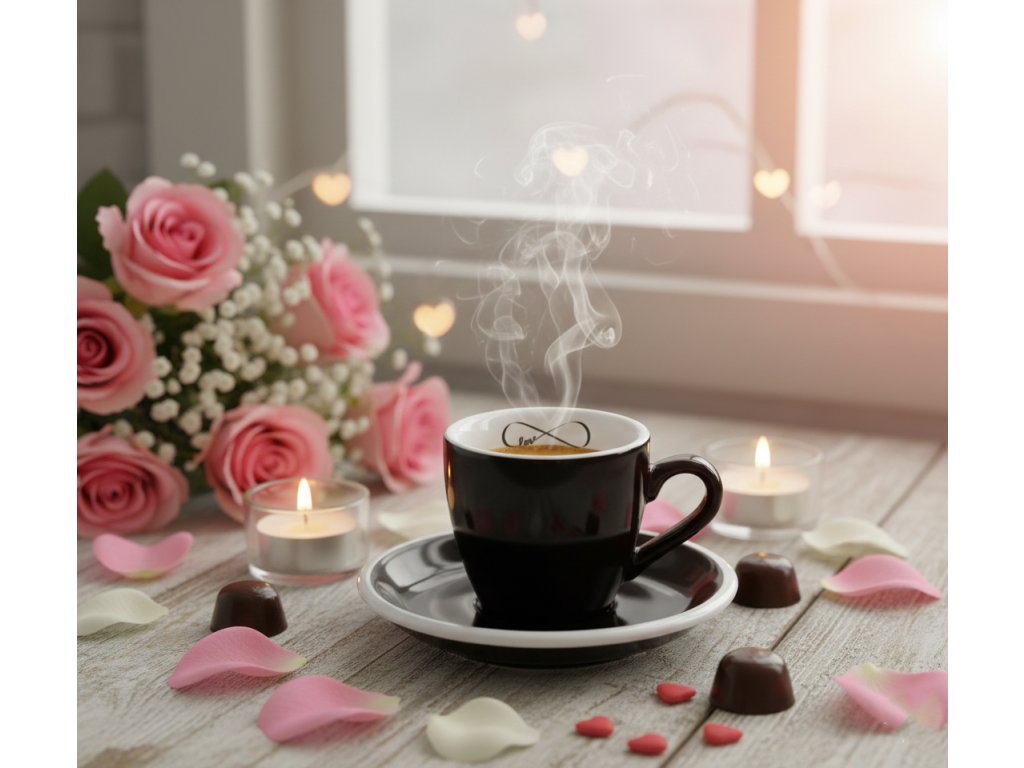 I krátká pauza na kávu se může stát romantickým okamžikem. Černý espresso šálek Roma z naší
