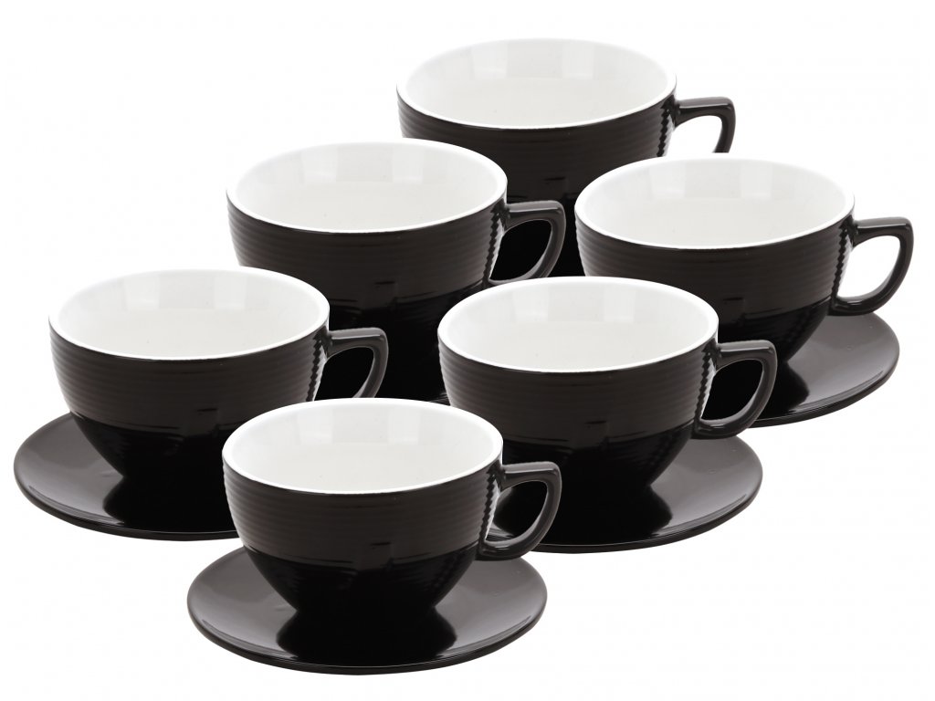 Černý cappuccino šálek s podšálkem Back o objemu 300 ml, set 6 ks.