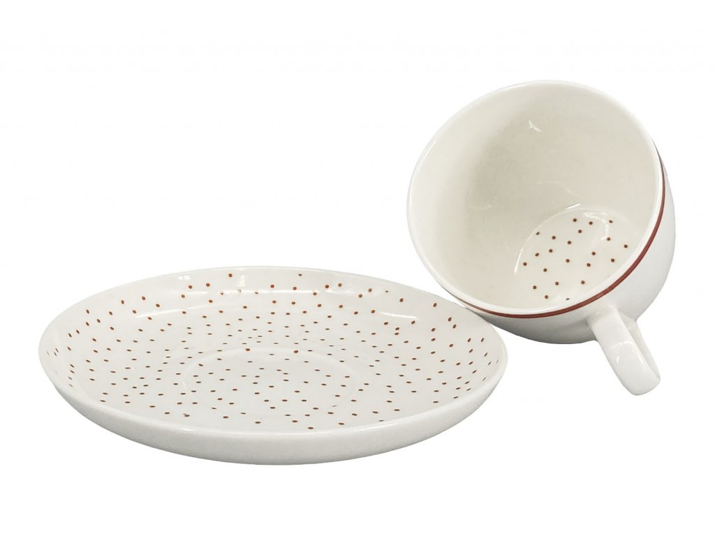 Šálek s podšálkem Fine Dots, 220ml, porcelán, bílá s červenými puntíky
