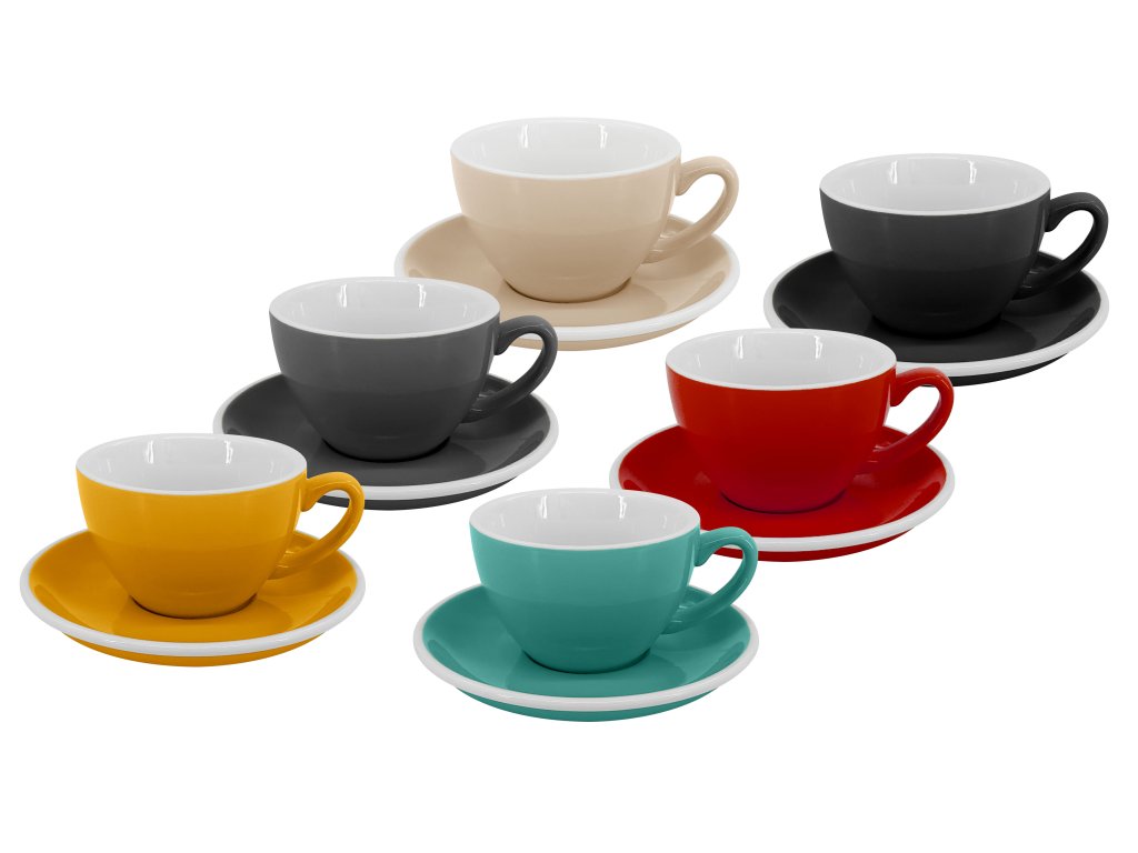 Set 6 ks - Cappuccino šálek s podšálkem Roma, 180 ml, mix barev