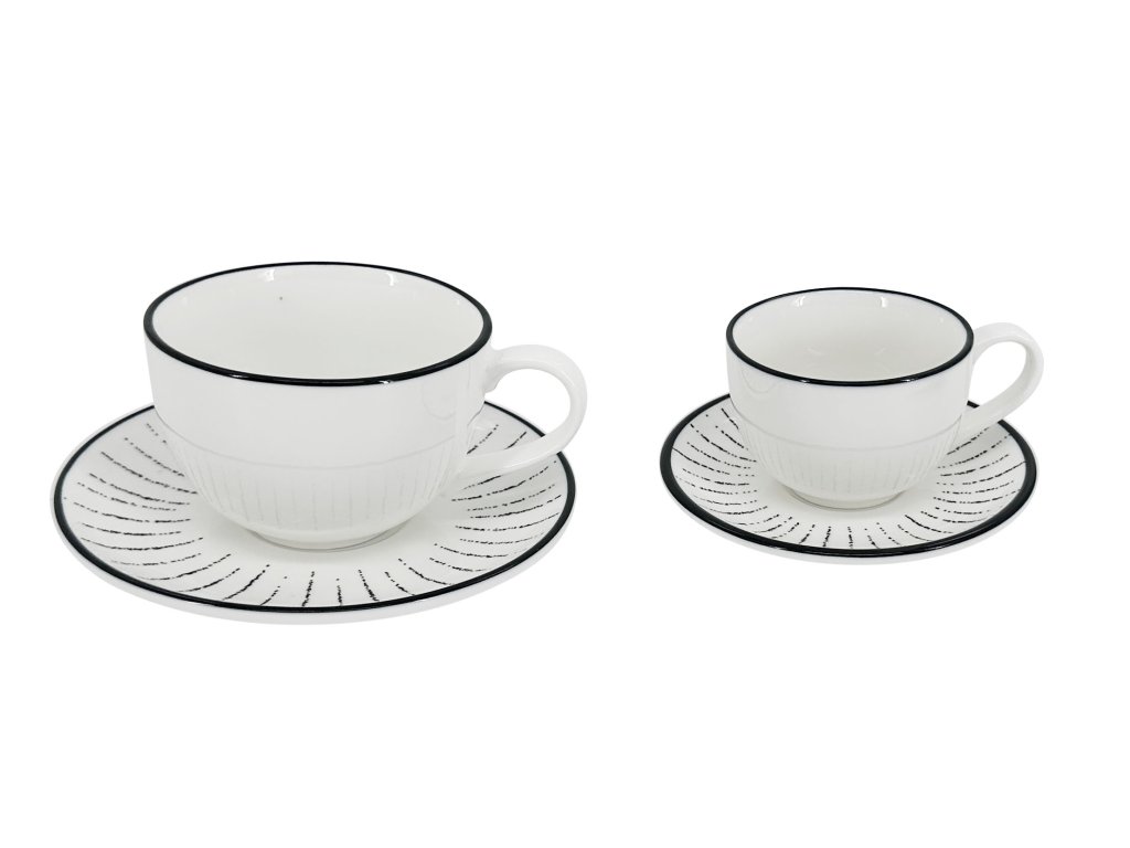 Díky svému černobílému provedení je tato sada velmi variabilní a skvěle ladí s moderními interiéry. Můžete ji používat samostatně jako výrazný prvek, nebo ji kombinovat s většími cappuccino šálky