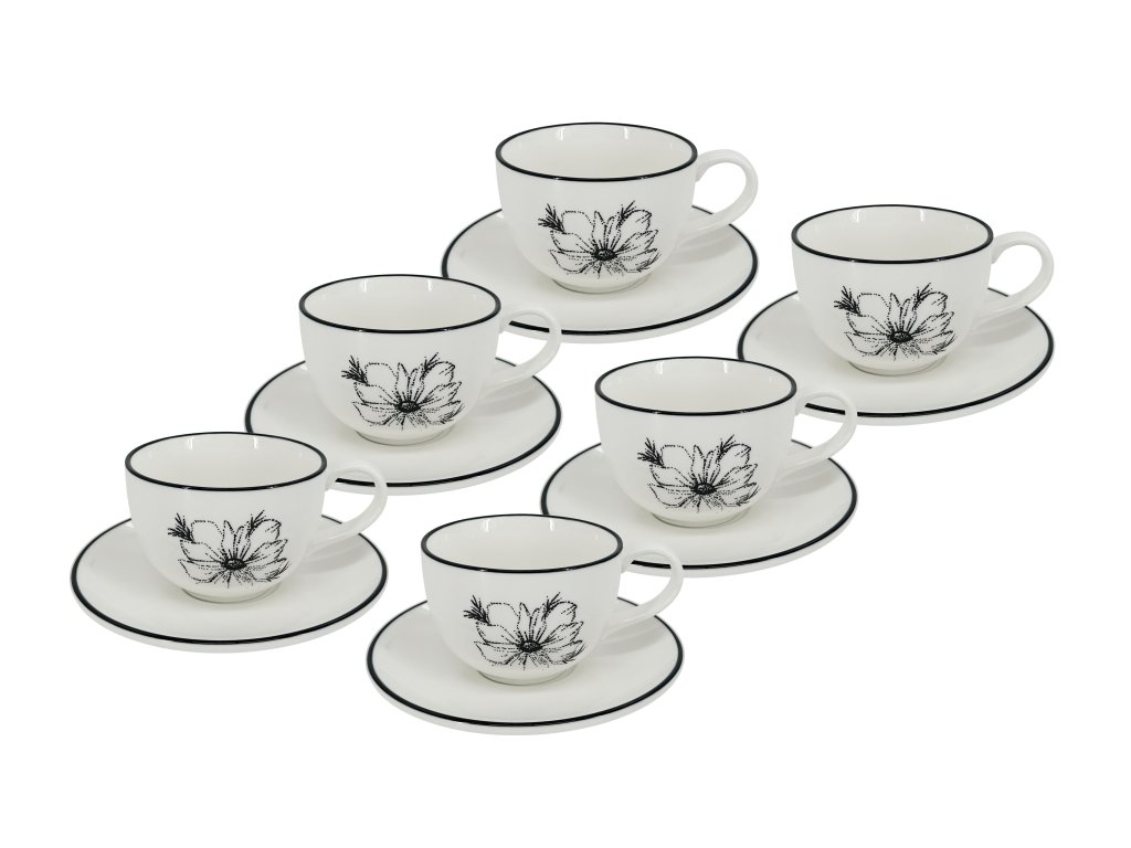 Proměňte podávání ranního espressa v estetický zážitek. Set 6 ks presso šálků s podšálky Alba Dash Bloom o objemu 90 ml v sobě spojuje čistotu minimalistického tvaru a křehkost přírodního motivu. Šálky jsou vyrobeny z kvalitního bílého porcelánu se zářivým sněhobílým nádechem, který dává dokonale vyniknout detailní grafice černé květiny na stěně šálku. Design harmonicky doplňuje tenká černá linka na horním okraji šálku a po obvodu podšálku, což je charakteristický prvek celé rodiny