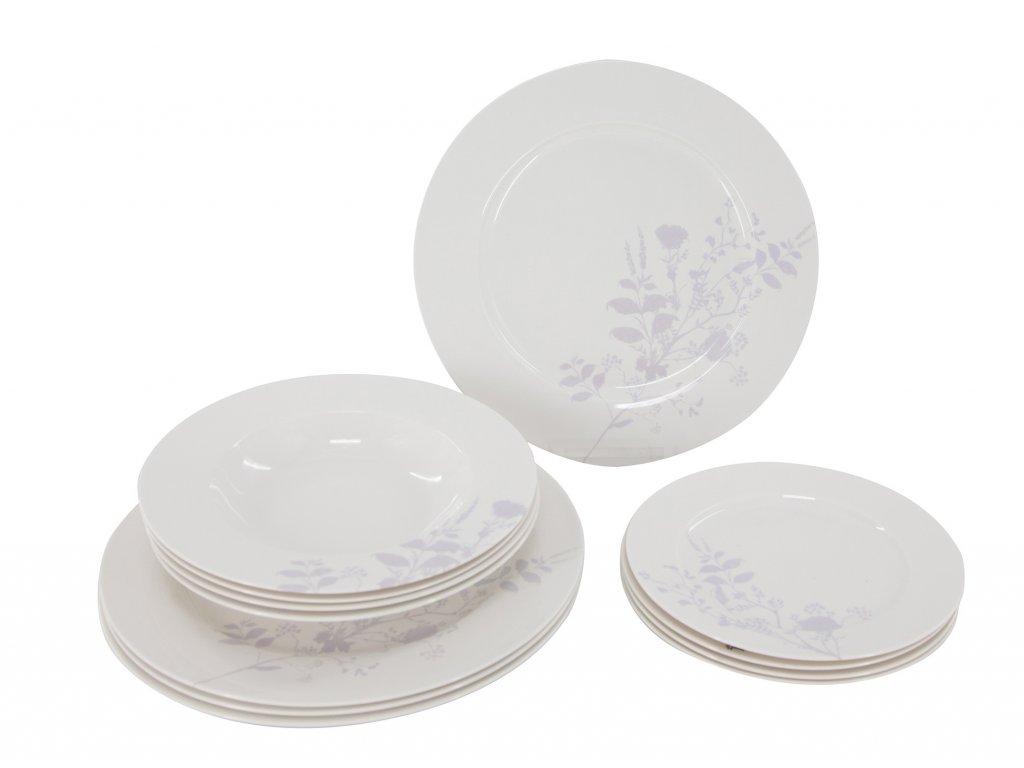 Souprava porcelánových talířů 12ks s jemným lila dekorem.