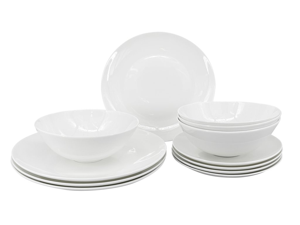 12dílná porcelánová jídelní sada Luna – bílá, kulatý tvar