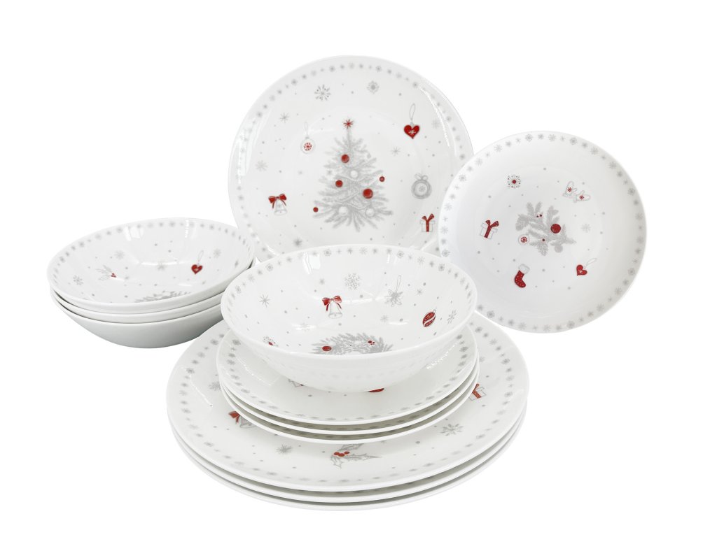 12dílná vánoční jídelní sada Luna Koleda– bílá/červená/šedá