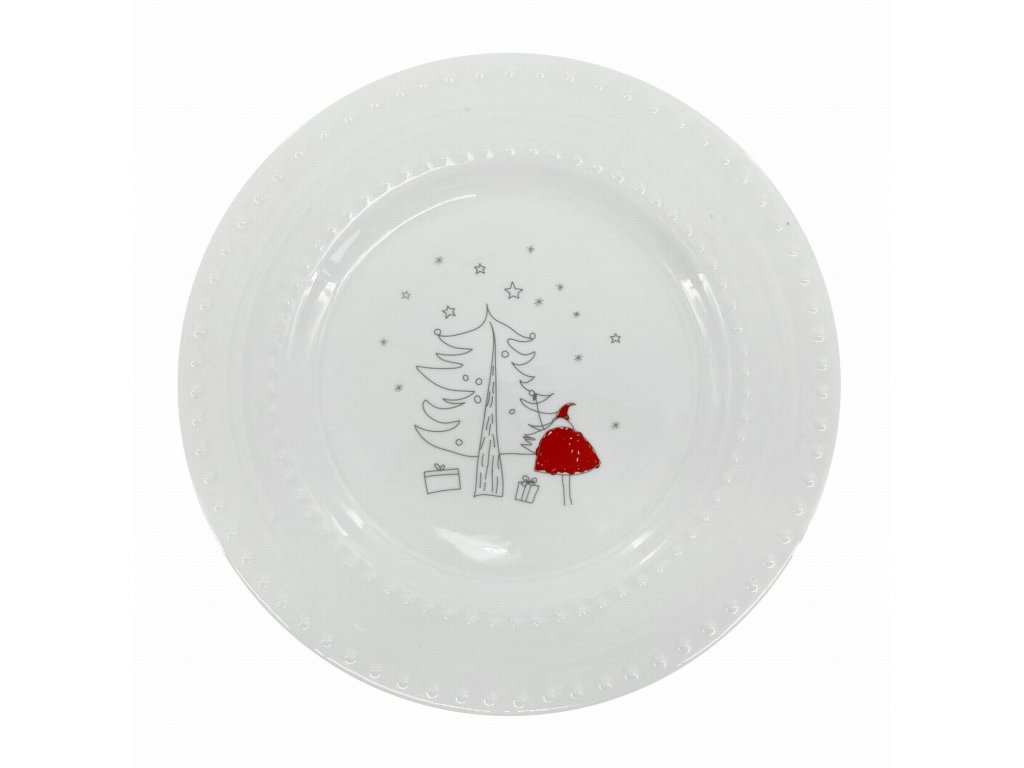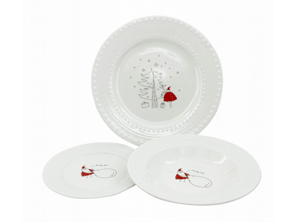 Jemně zdobené porcelánové talíře s jemným vánočním dekorem se hodí na sváteční stůl. Jednoduchá vánoční sada talířů pro veselejší vánoce.