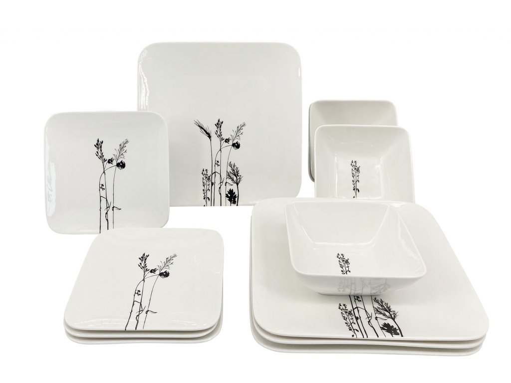 Jídelní souprava Carré Field, 12 ks, bílá s černým dekorem Field.
