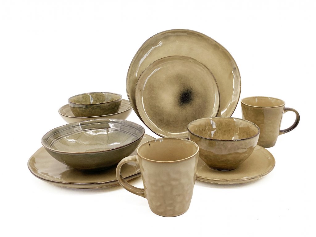 Keramická jídelní souprava 10 ks z kolekce Corn s lesklou glazurou v béžové barvě.