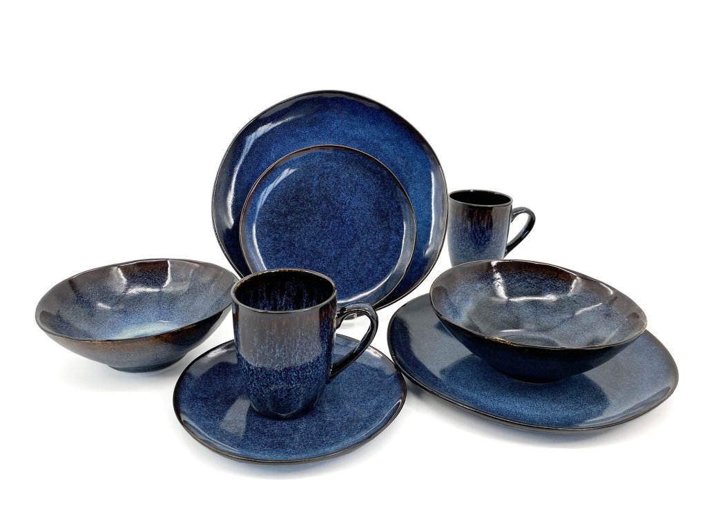 Modrá keramická sada 8 ks Sky se stříkanou glazurou v modré barvě.