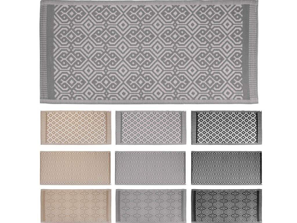Venkovní kempingový koberec Pattern je vyroben z prodyšného polypropylenu. Poplypropylen je odolný materiál, který snese podmínky venkovního prostředí. Snadno se udržuje. Díky svému designu a rozměru 90 x 180 cm se hodí nejen pro kempování, ale také jako koberec na balkon.