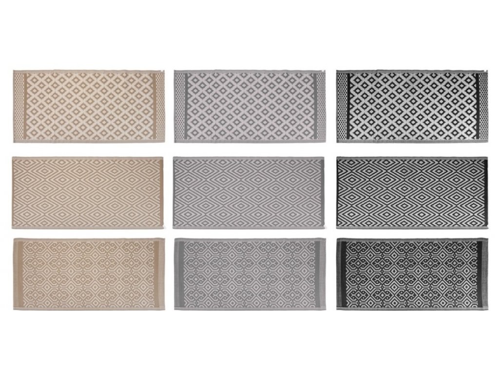 Venkovní koberec Pattern je k dispozici ve třech různých geometrických vzorech a ve třech různých barvách – antracit, šedá a béžová. Každý vzor dodá vašemu balkonu jiný vzhled a atmosféru. Vyberte si ten, který nejlépe ladí s vaším nábytkem a dekoracemi.