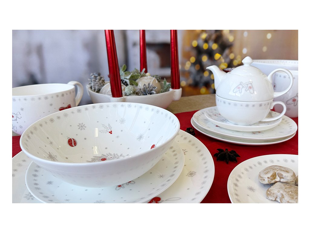 Čajová sada Luna Koleda je skvělý vánoční dárek pro jednotlivce, který ocení praktický a zároveň krásný design. Díky své kompaktnosti je ideální i pro čajové chvilky v kanceláři nebo na chalupě. Kombinujte set s jídelní sadou Luna Koleda s motivem sněhuláka pro kompletní sváteční stolování. Celý porcelánový set je vhodný do myčky na nádobí.