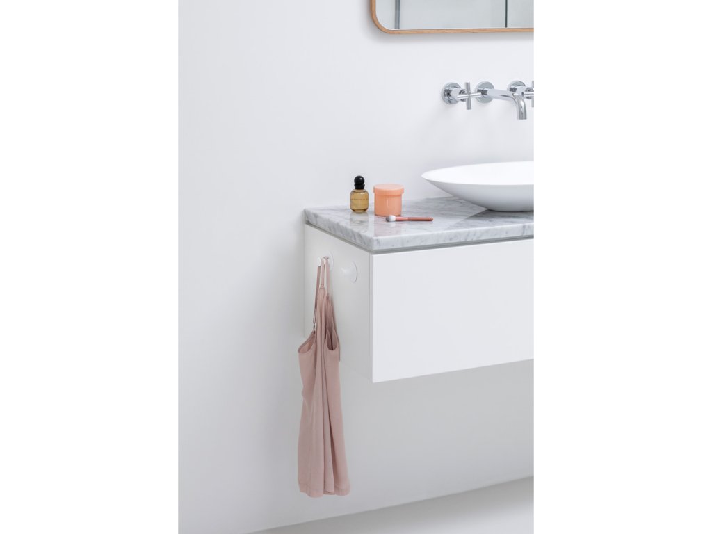Díky těmto nenápadným háčkům můžete své ručníky pověsit kamkoli chcete. Montáž na zeď je snadná pomocí přiložených šroubů. Na hladké povrchy do kterých nechcete vrtat můžete využít přibalené oboustranné pásky.